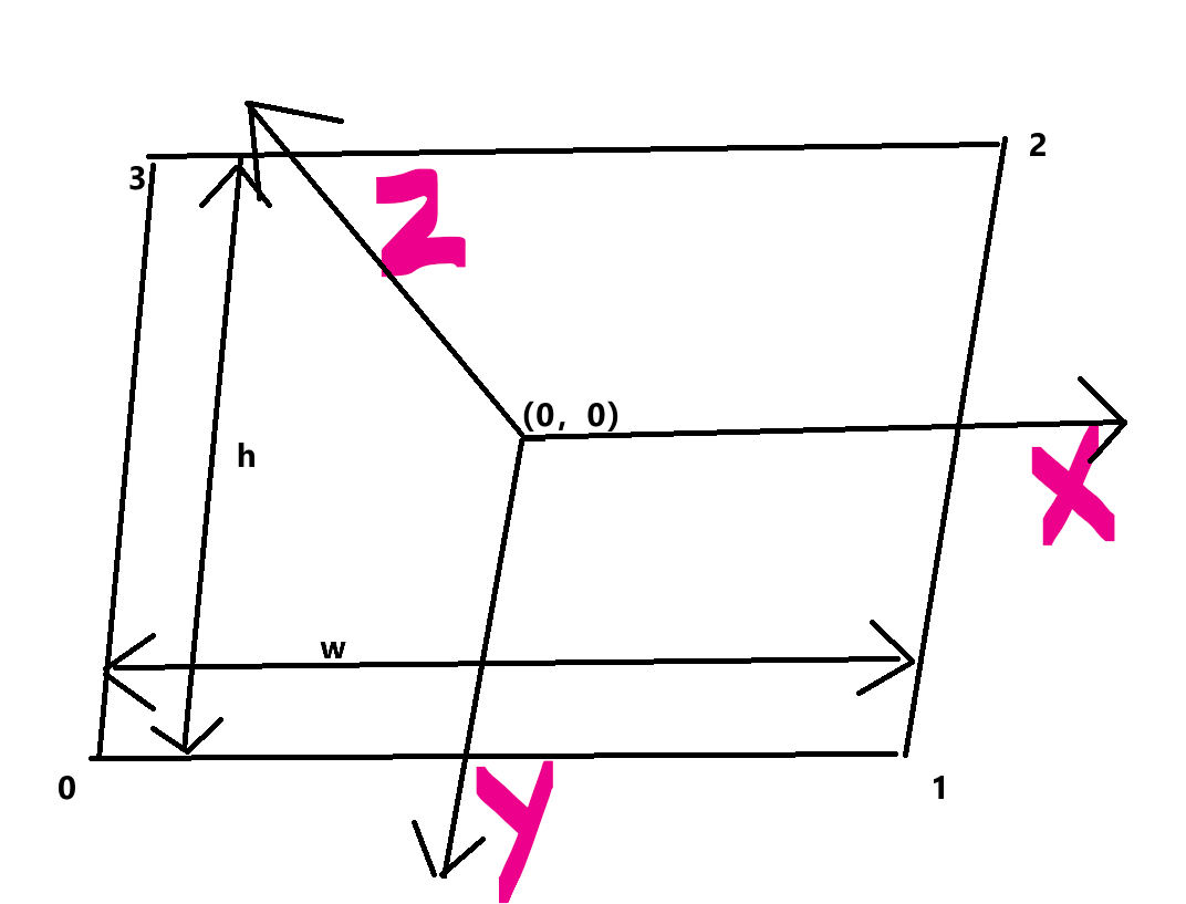 坐标3对应的世界坐标就是(-w / 2 , -h / 2, 0.) 对应x,y,z